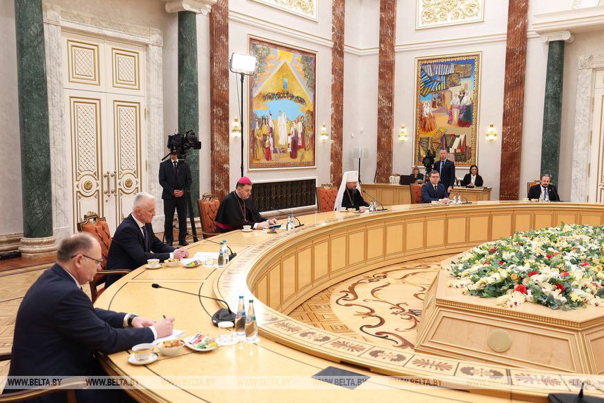 Президент Республики Беларусь Александр Лукашенко 10 февраля 2025 года встретился во Дворце Независимости с руководителями основных религиозных конфессий, которые зарегистрированы в Беларуси.